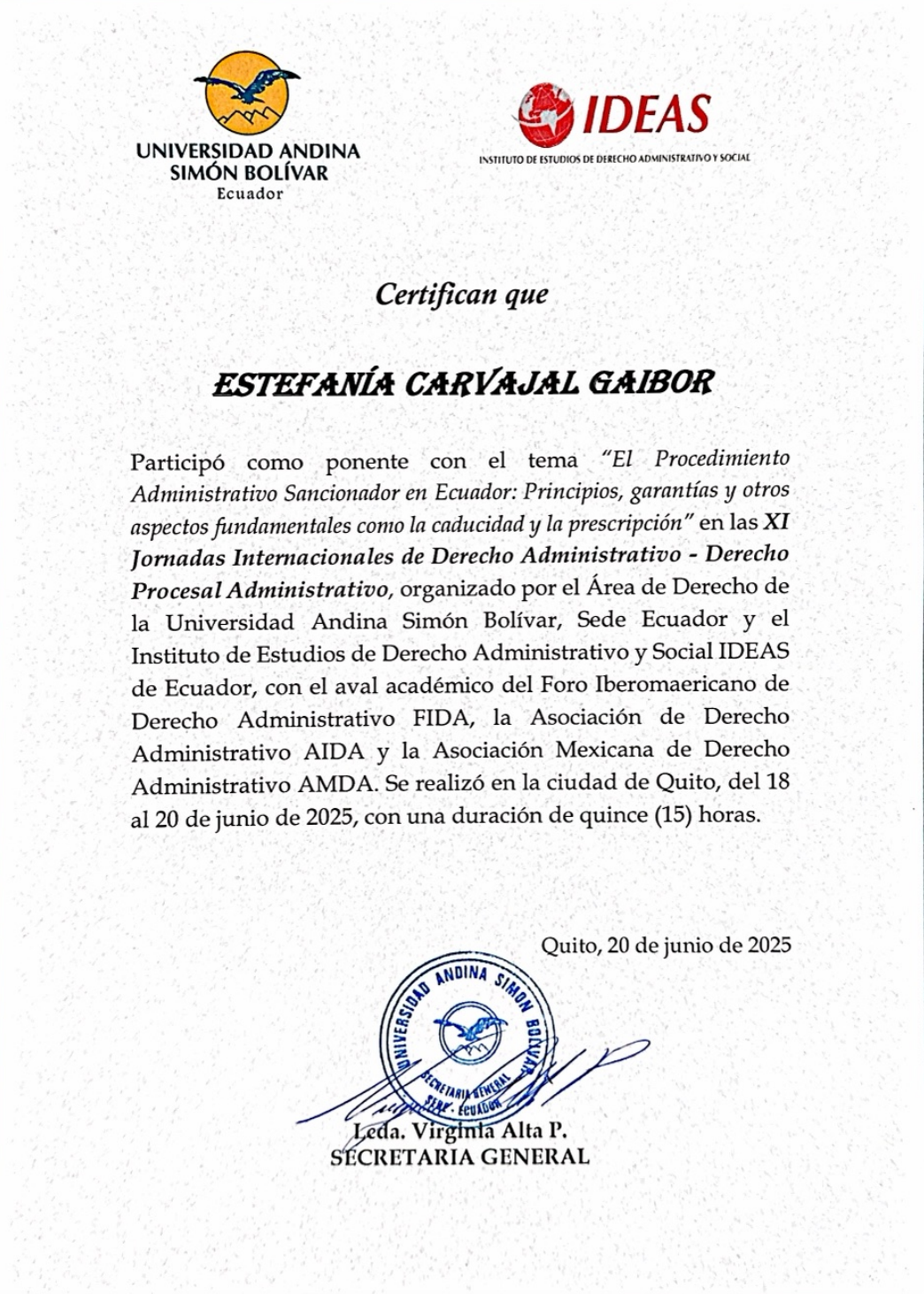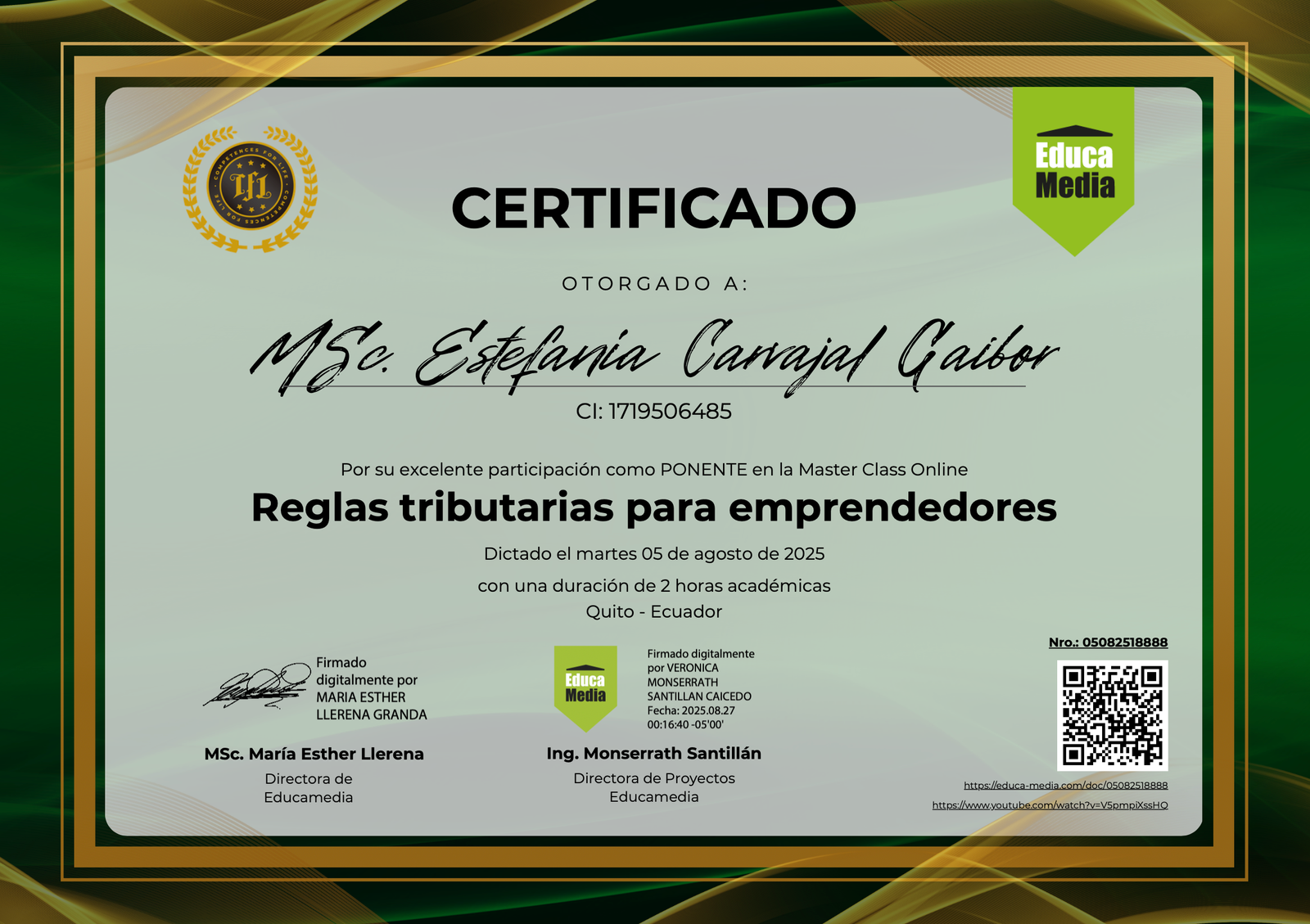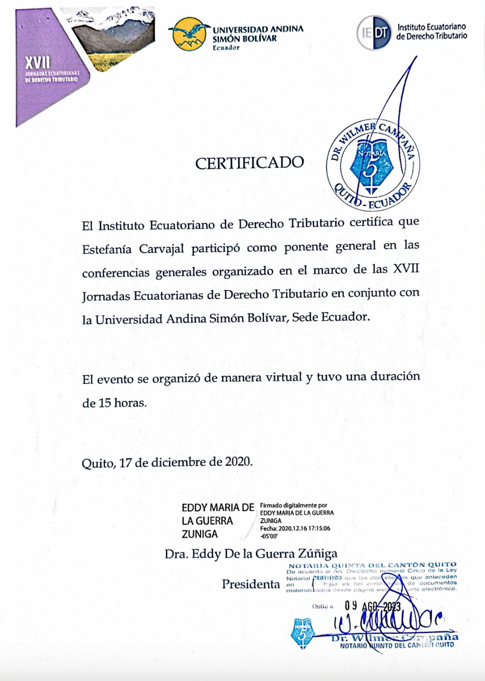 Abogada especializada en Derecho Tributario, Aduanero y Administrativo, con amplia experiencia en los sectores público, privado y académico. Posee un Doctorado en formación (Universidad de Salamanca, España), un Máster en Tributación Internacional (Universidad Externado de Colombia) y un Magíster en Tributación (Universidad Andina Simón Bolívar). Además, es Licenciada en Comunicación Social y Abogada en Ecuador………..